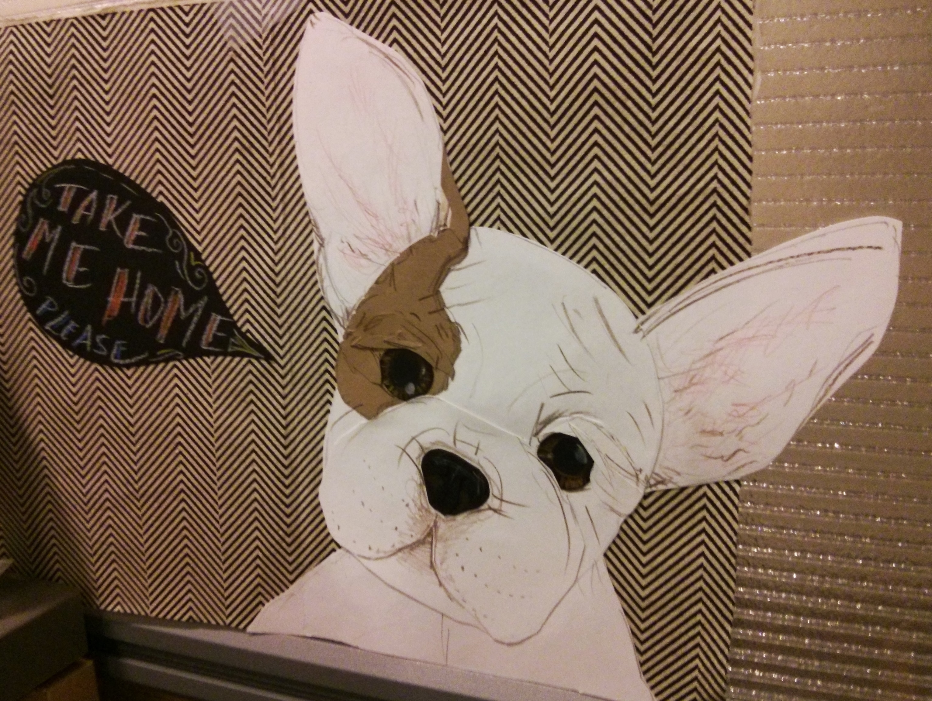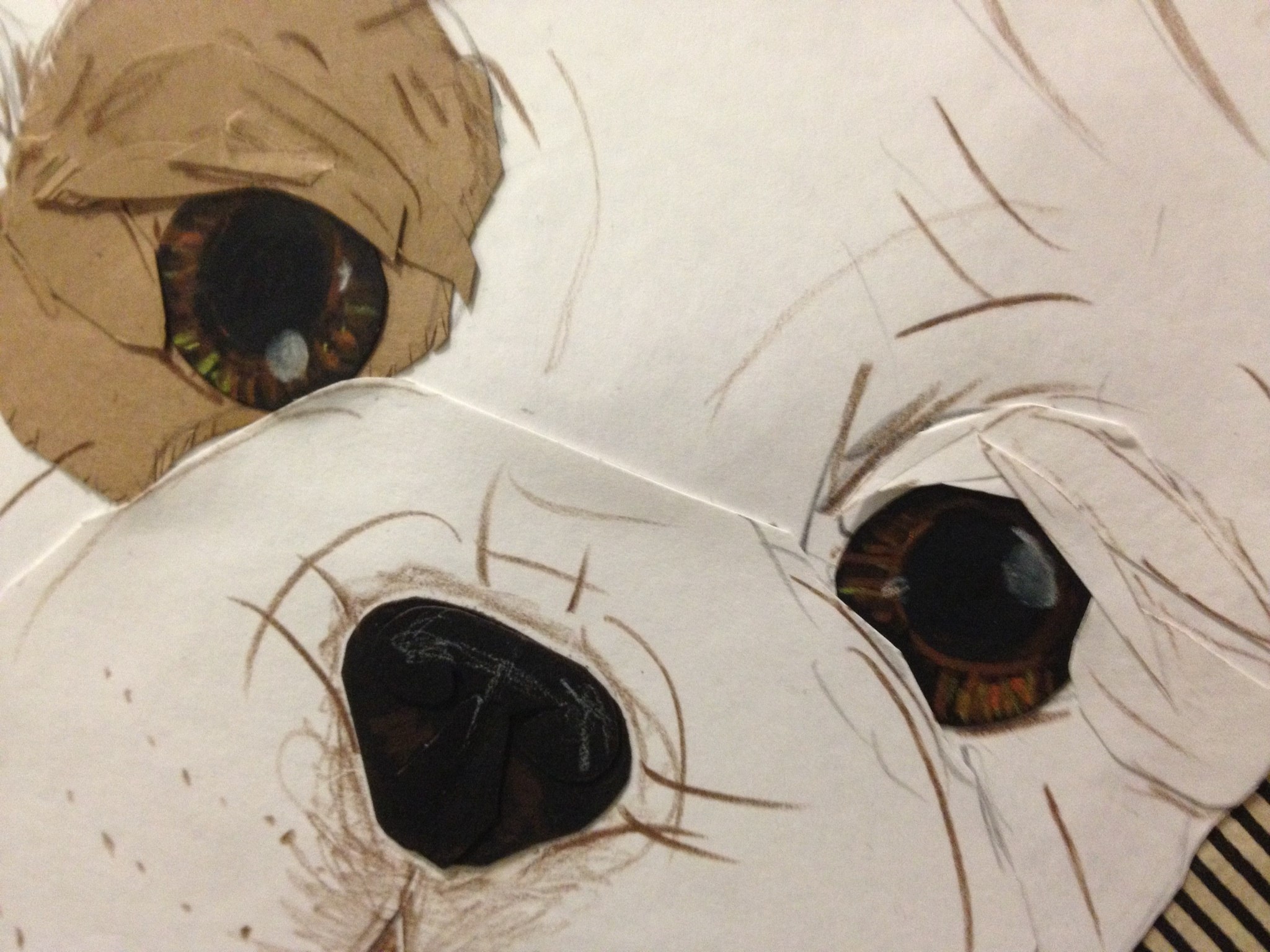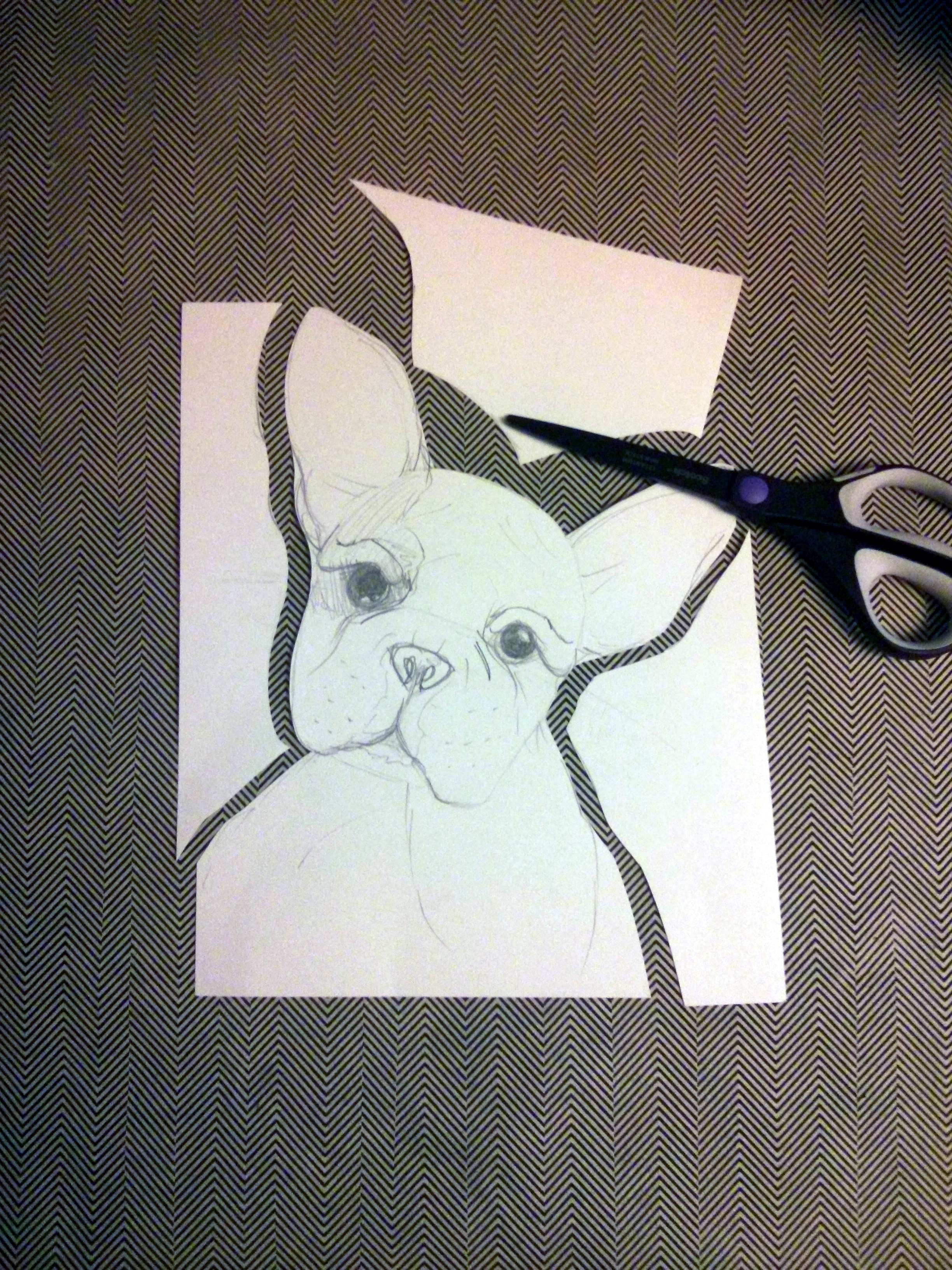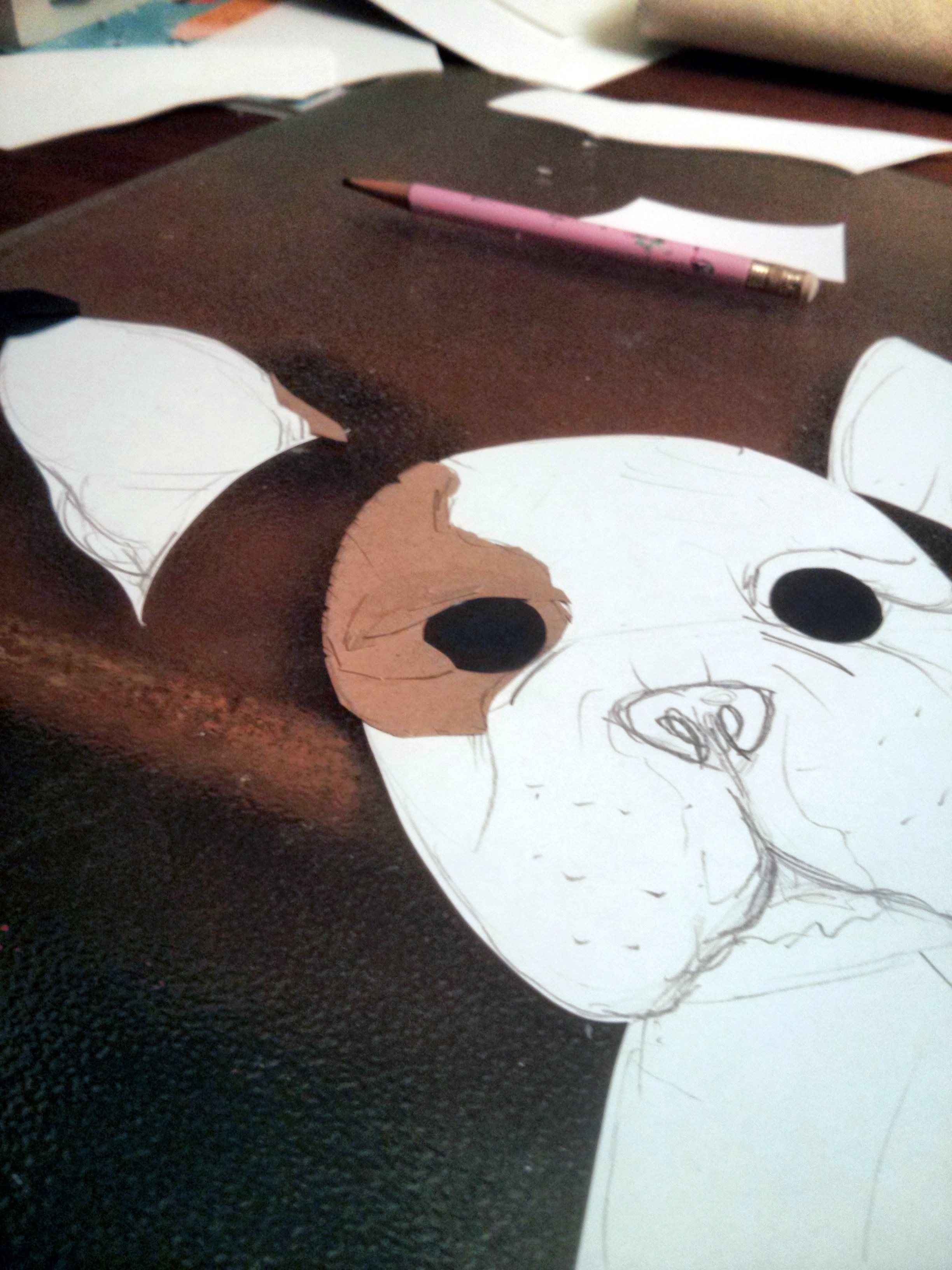 Sketch it!Cut it into sectionsAdd bottom bits that will be covered with layers and layers of paper for depth (creepy puppy face!!)Add details- eyebrows, skin folds to shape the eyes. P.S. that is my most favorite pencil, had it since 2nd grade!!Completed and ready for allergy-free loving